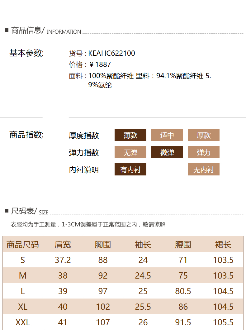 - 衣长:中裙