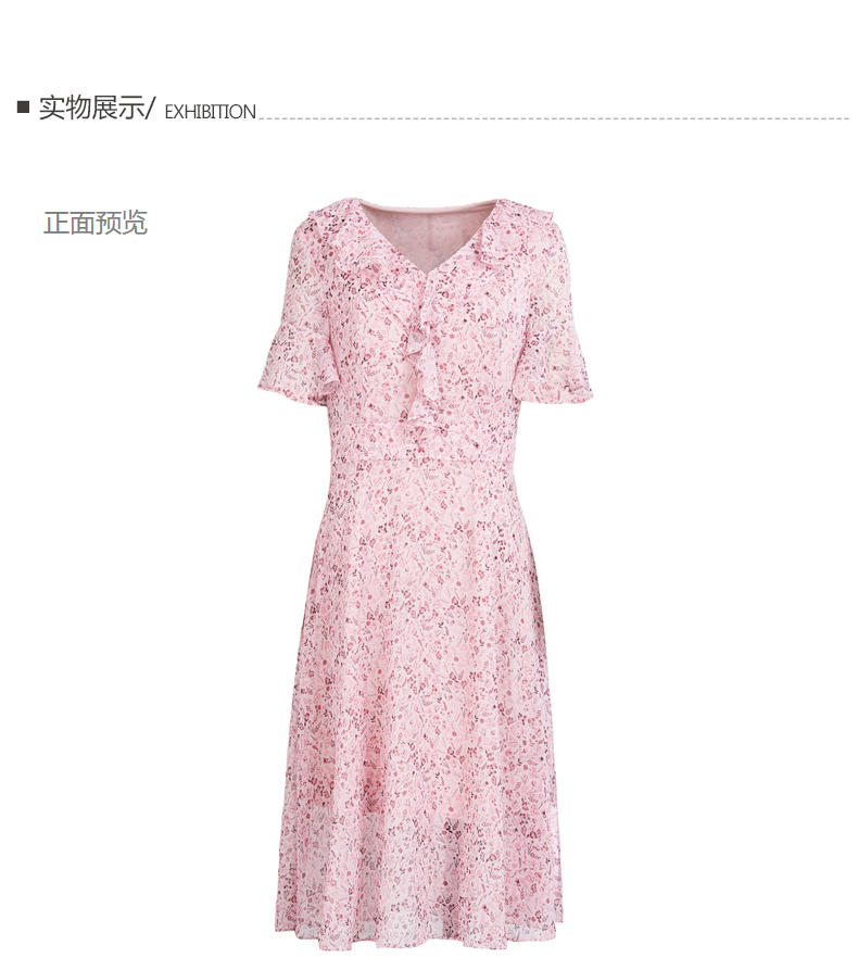 碎花短袖 雪纺v领连衣裙