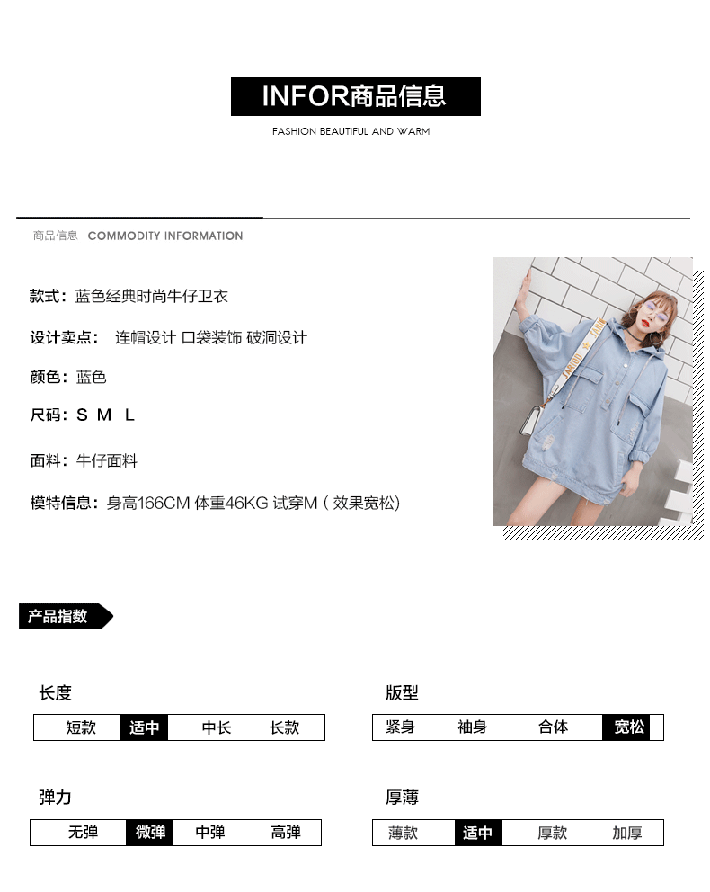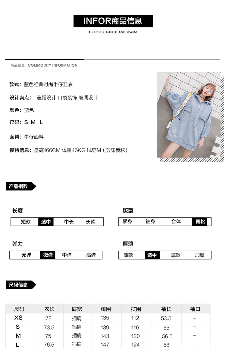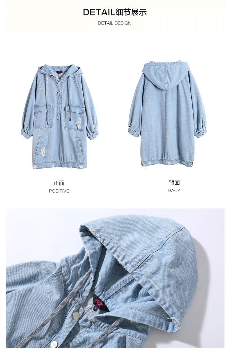 产品名称:乔琪诺牛仔卫衣女中长款连帽套头中袖韩版宽松2025新款连衣裙夏