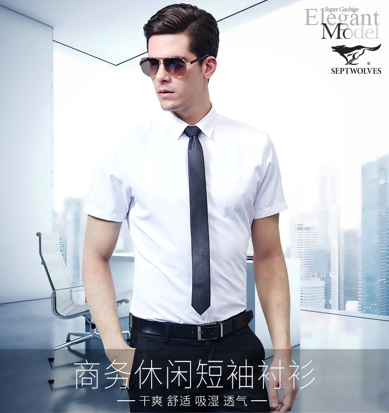 产品名称:七匹狼短袖衬衫 2025夏季新款男士中青年纯色商务休闲白衬衣男装