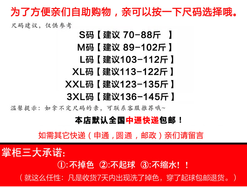 - 尺码:L【建议102-112斤】 M【建议92-102斤】 S 【建议65-92斤】 XL【建议112-