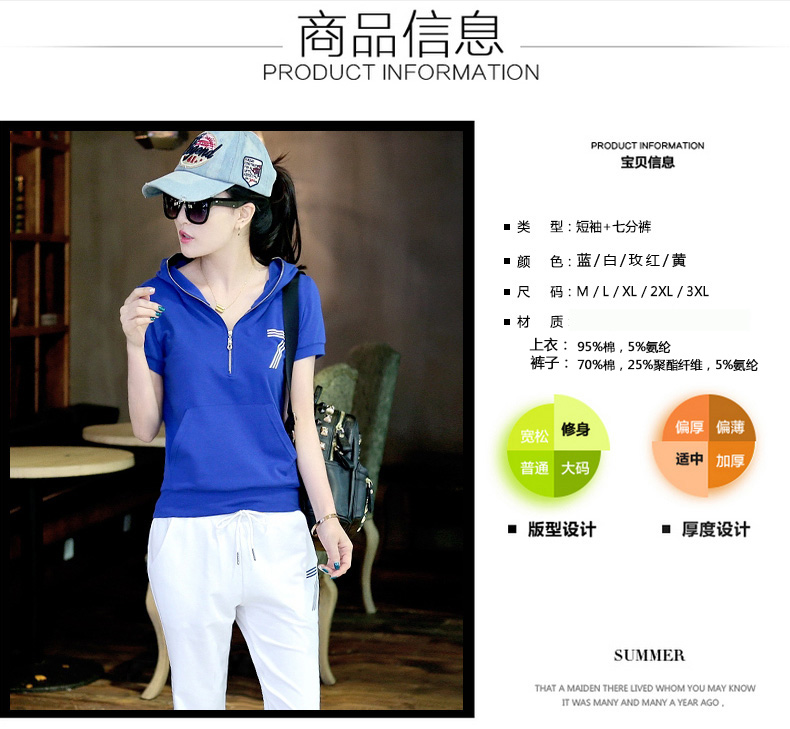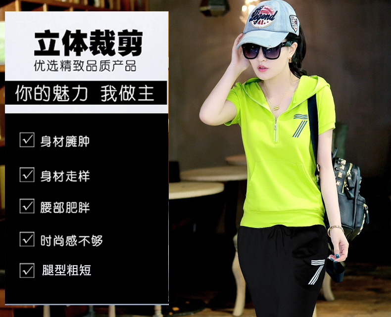 产品名称:运动套装女夏装2025新款潮时尚女装短袖七分裤两件套夏天休闲衣服