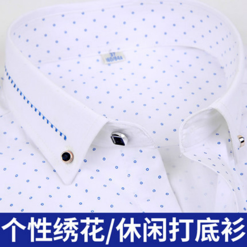 产品名称:男士白衬衫短袖修身韩版潮流帅气2025新款夏季休闲百搭印花衬衣男