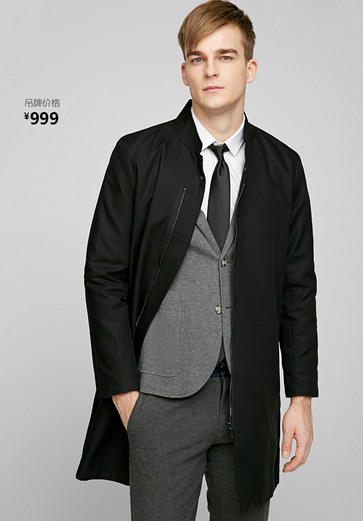 产品名称:SELECTED思莱德纯棉简约立领男士长款防风风衣外套BL|417121501
