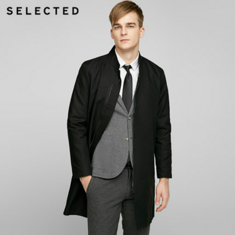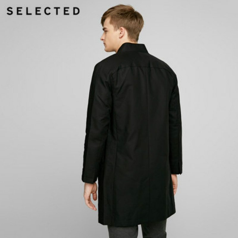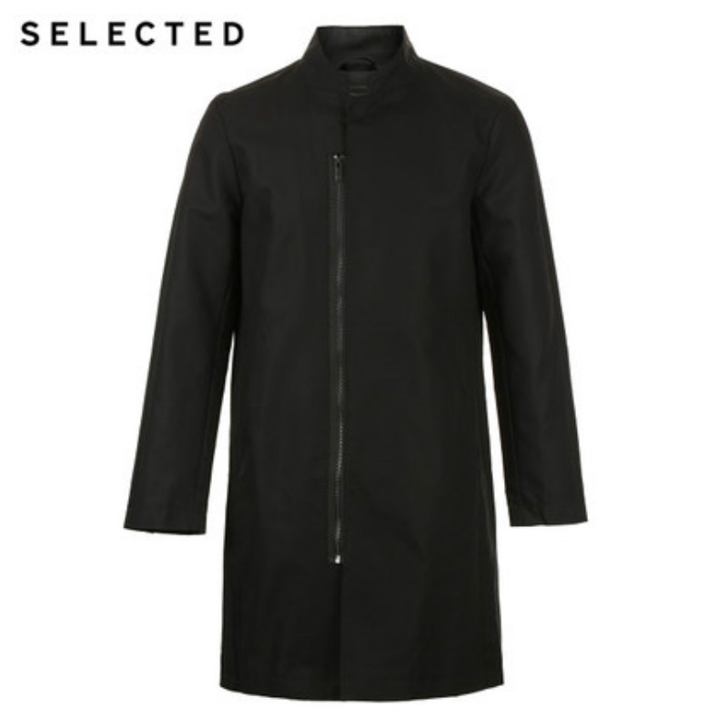 SELECTED思莱德纯棉简约立领男士长款防风风衣外套BL|417121501