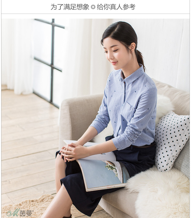 产品名称:茵曼旗舰店纯棉长袖衬衫曼茵2025春装新款印花衬衣女上衣女装寸衫