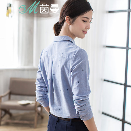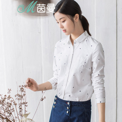 茵曼旗舰店纯棉长袖衬衫曼茵2025春装新款印花衬衣女上衣女装寸衫