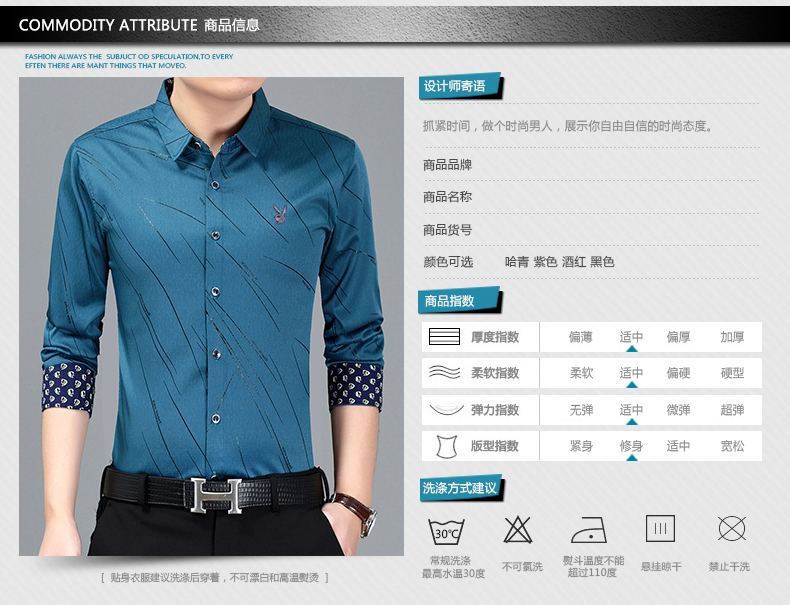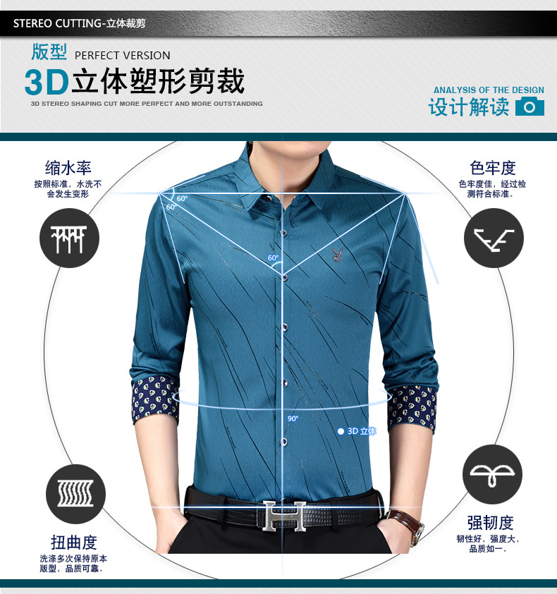 产品名称:花花公子春季男士长袖衬衫免烫中青年休闲衬衣潮流男装印花衬衣