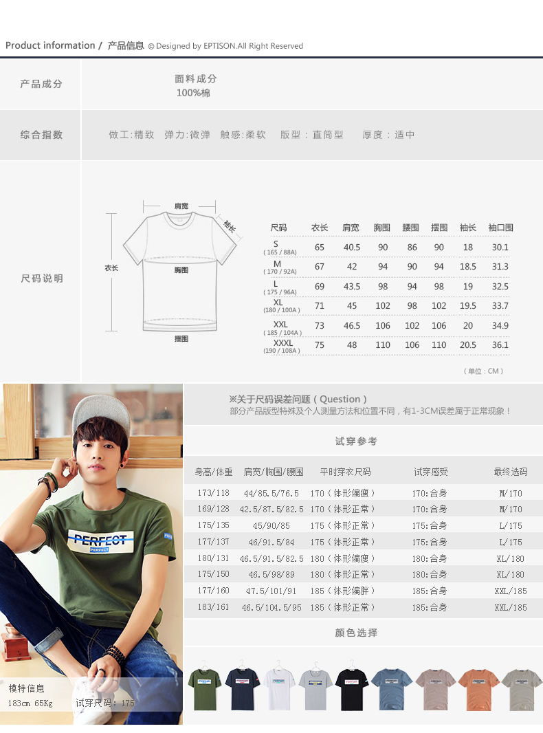 产品名称:衣品天成男士短袖T恤夏季男装半袖衣服潮流韩版修身纯棉圆领体恤