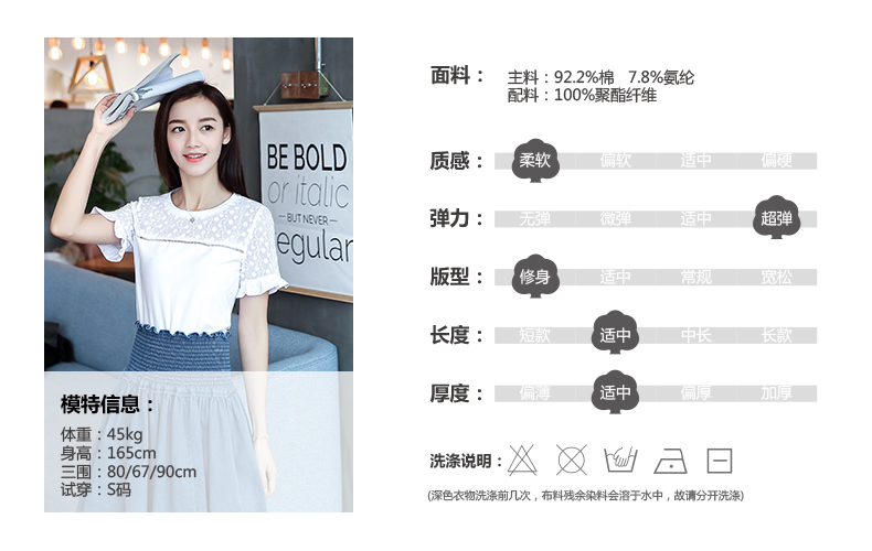 - 材质成分:棉92.2% 聚氨酯弹性纤维(氨纶)7.8%