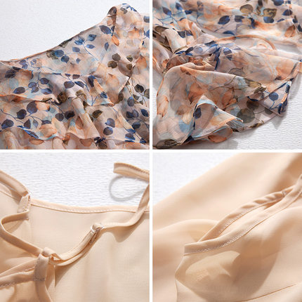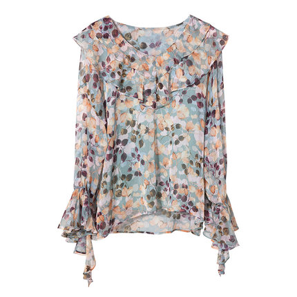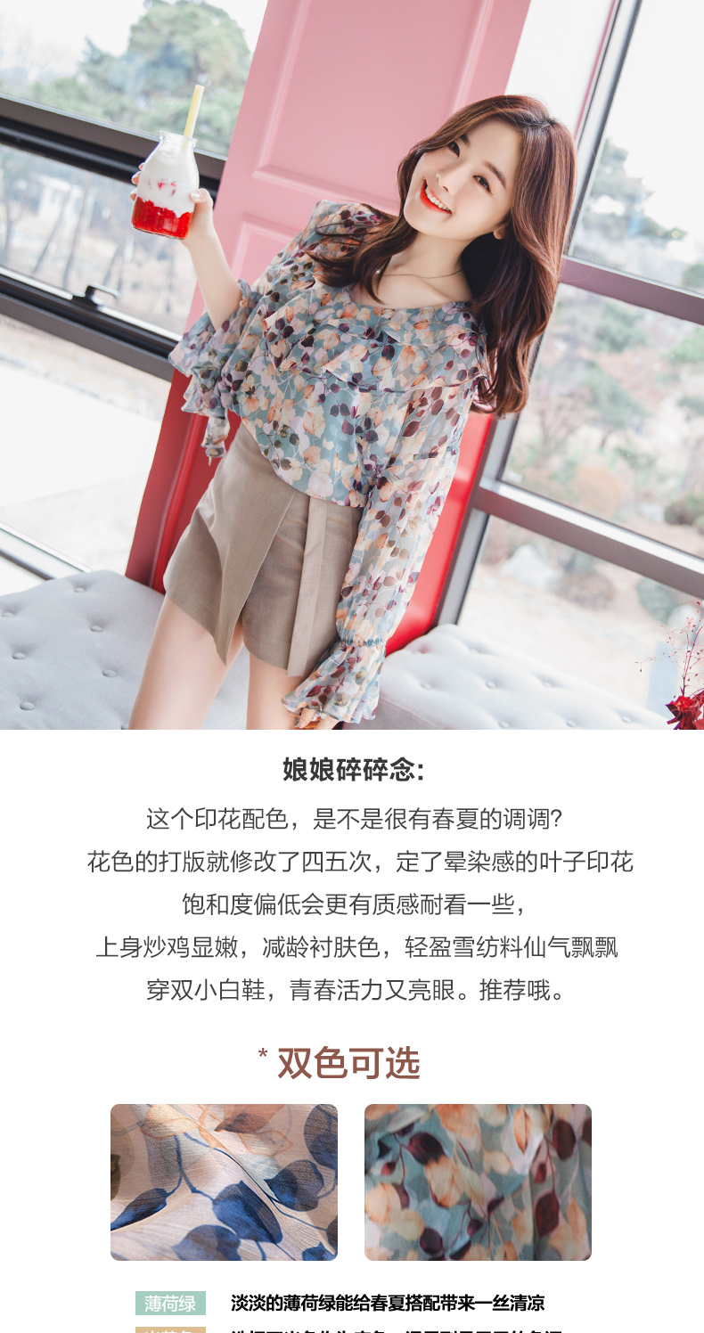 产品名称:润乙一夏装2025新款女雪纺衫上衣超仙甜美碎花V领荷叶chic一字肩