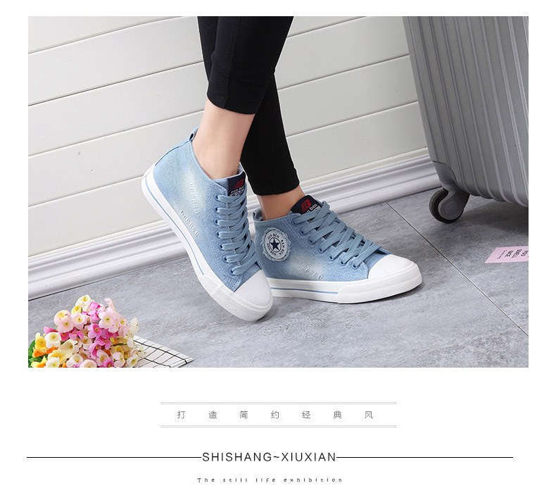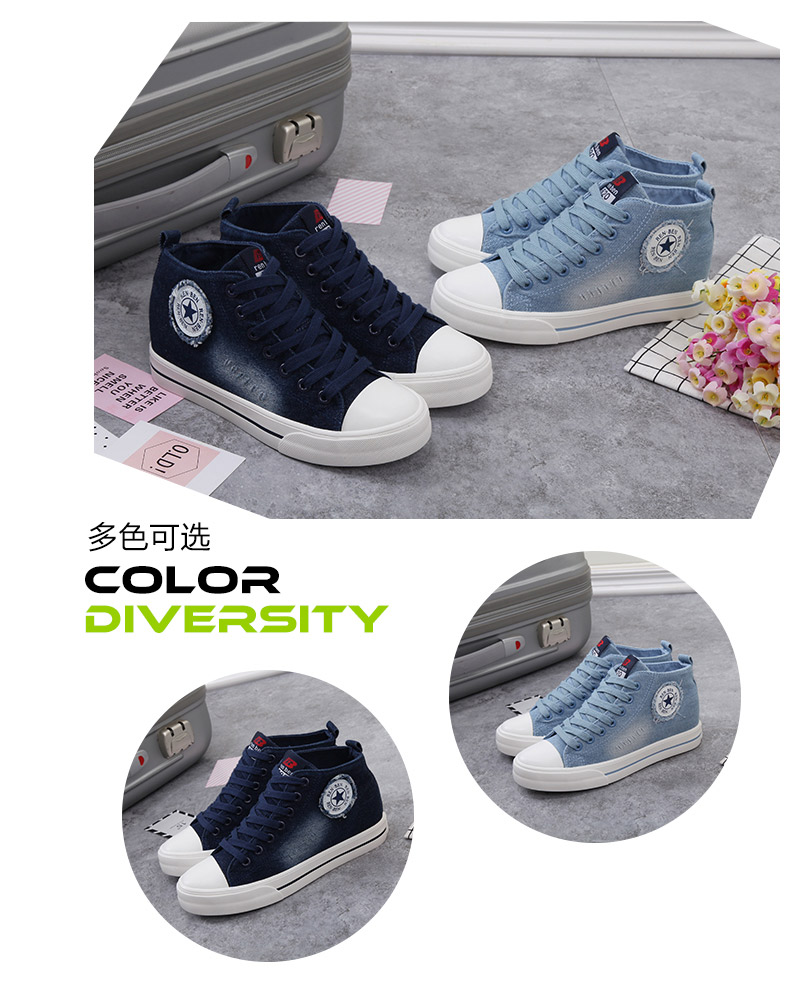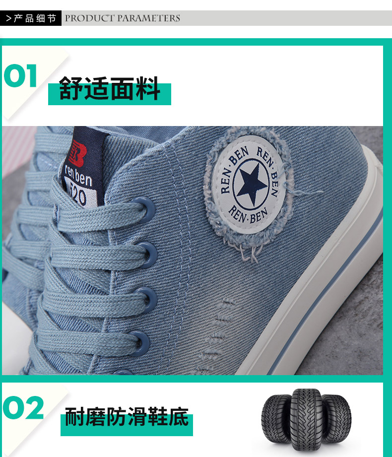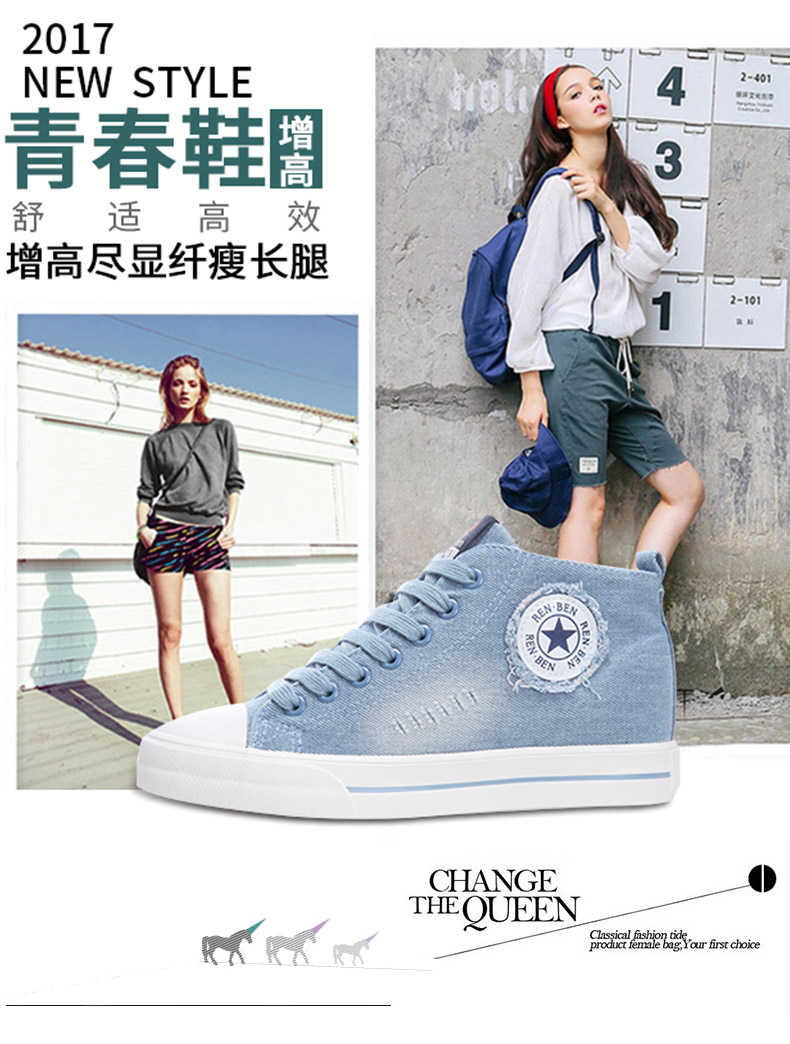 产品名称:人本高帮帆布鞋内增高布鞋高邦高腰单鞋牛仔布系带学院风学生款女