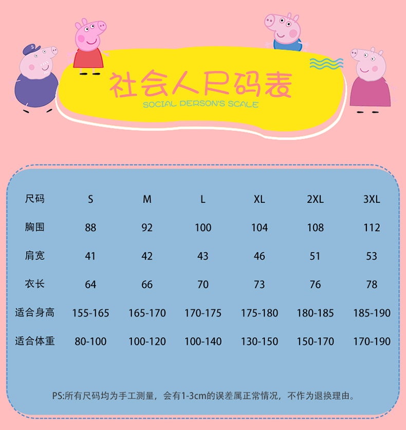 产品名称:小猪佩奇社会人佩琪短袖t恤成人衣服恶搞联名抖音潮牌tee男女半袖