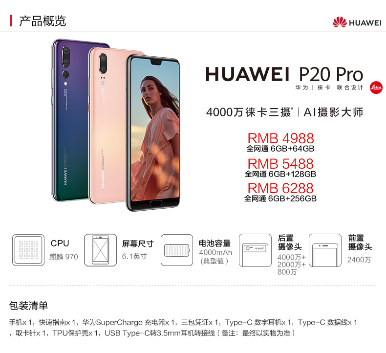 - 产品名称:Huawei/华为 P20