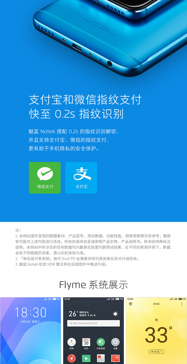 产品名称:【领券低至919】Meizu/魅族 魅蓝 Note6 疾速双摄 快充大电池