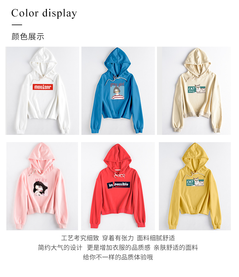 产品名称:2025新款ins超火短款连帽卫衣女夏春季bf风薄款帽衫潮学生宽松