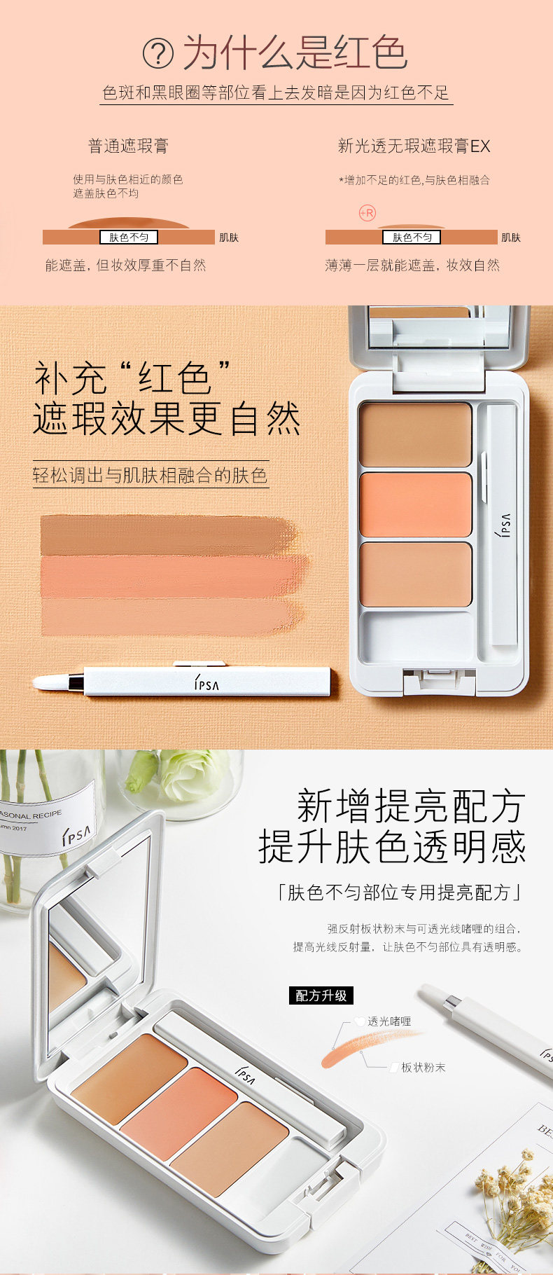 产品名称:IPSA茵芙莎三色遮瑕膏 遮盖脸部痘印痘痘斑点雀斑黑眼圈遮瑕盘