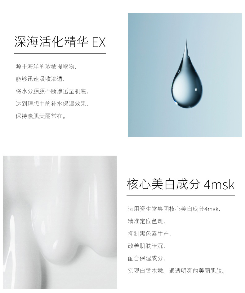 - 功效:补水 保湿 提拉紧致 提亮肤色 滋润 舒缓肌肤 嫩肤 舒缓镇定 淡斑