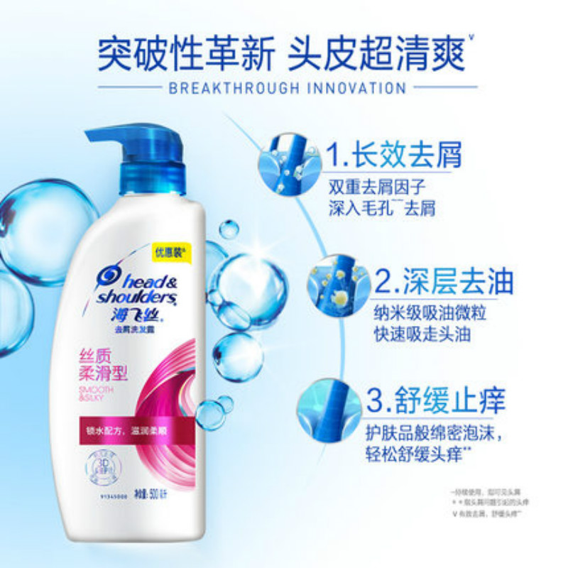 产品名称:海飞丝鹿晗洗发水丝质柔滑去屑止痒洗头露膏套装男女士500ml*3
