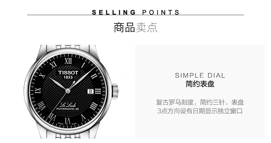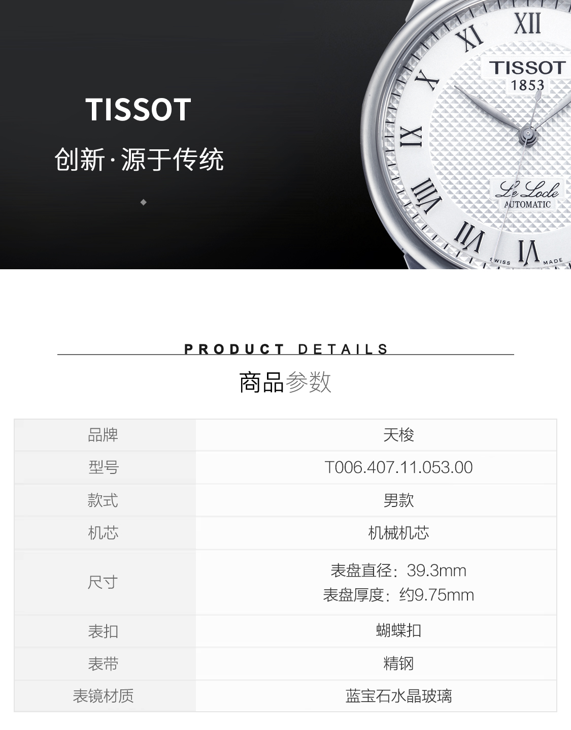 产品名称:【直营】香港直邮天梭力洛克系列全自动机械男表正品
