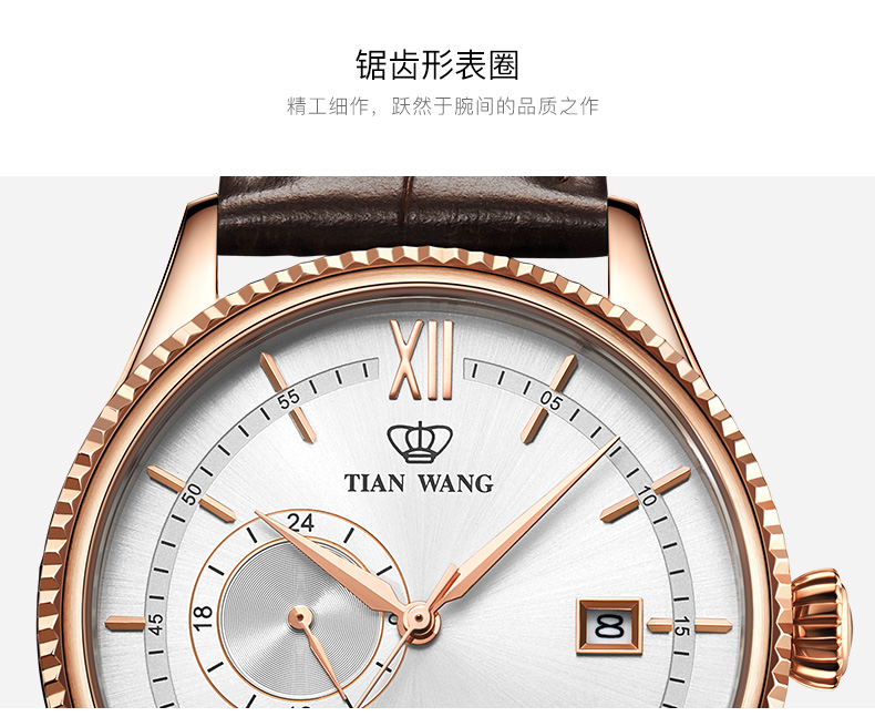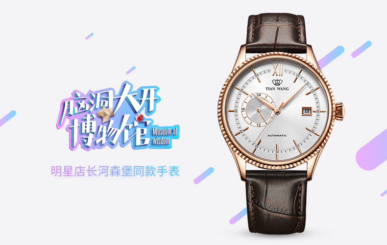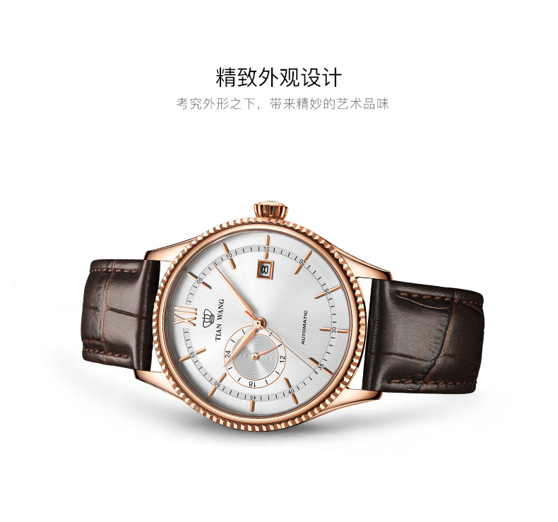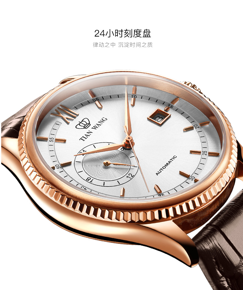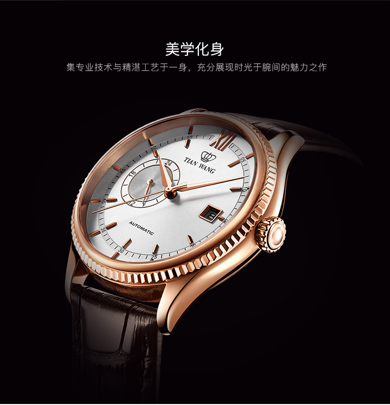 产品名称:仲尼Johnny同款 天王表男表自动机械表皮带日历休闲腕表GS5956