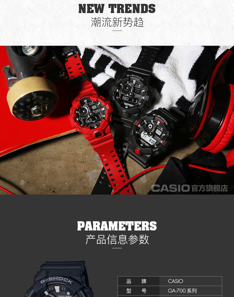产品名称:casio卡西欧G-SHOCK旗舰店官网GA-700运动男士电子手表男表gshock