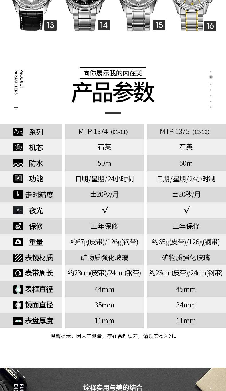 - 机芯类型:石英机芯