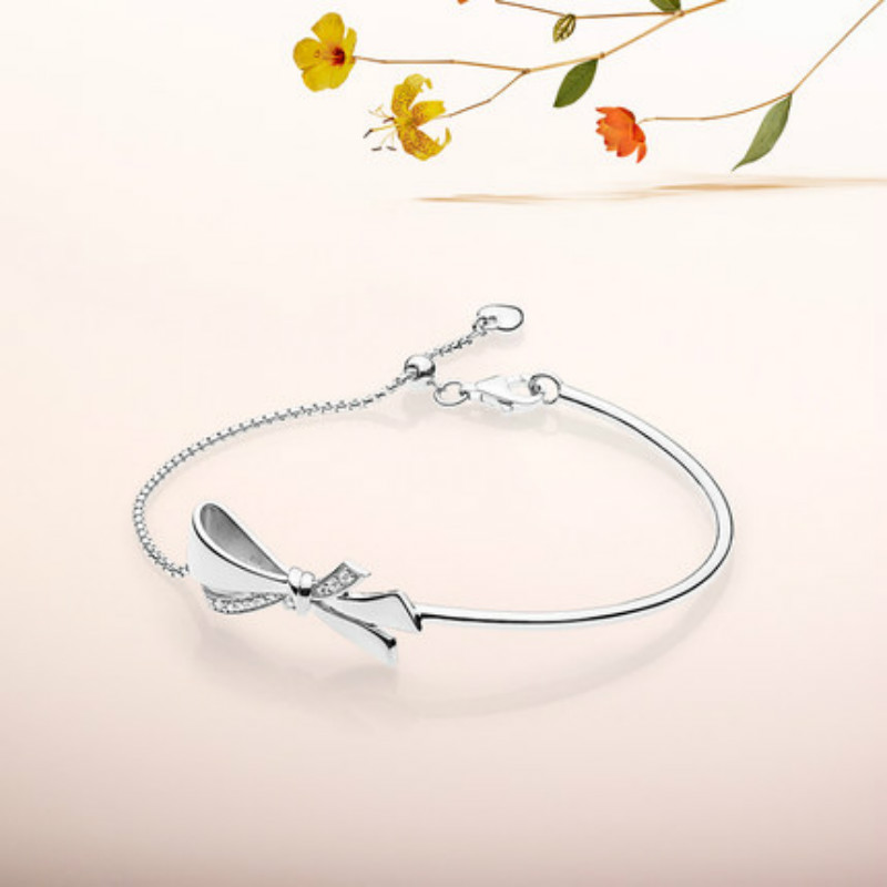 PANDORA潘多拉 华丽蝴蝶结手链925银手链597242CZ气质时尚简约女