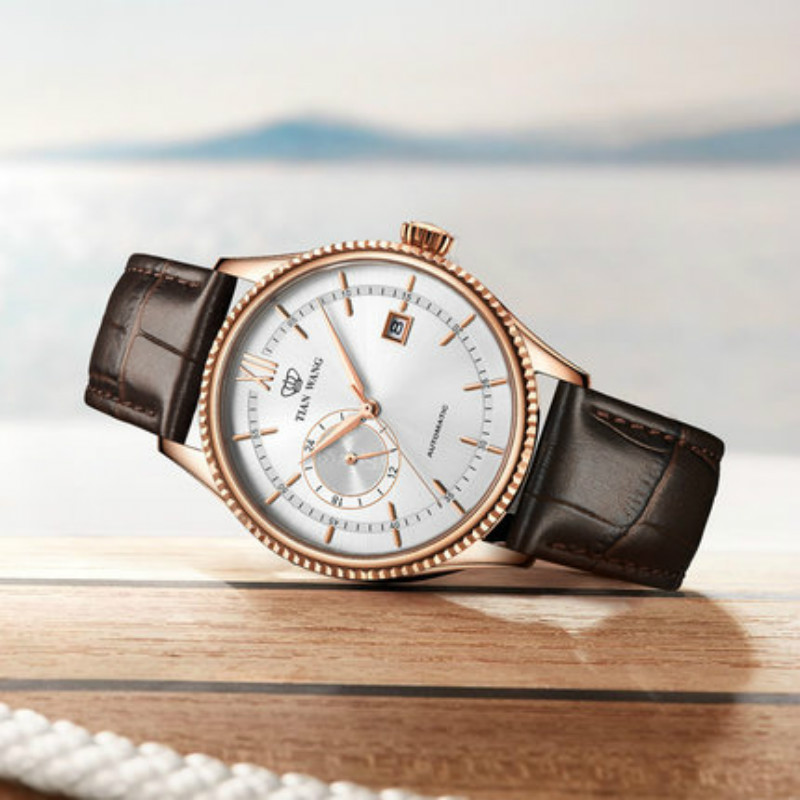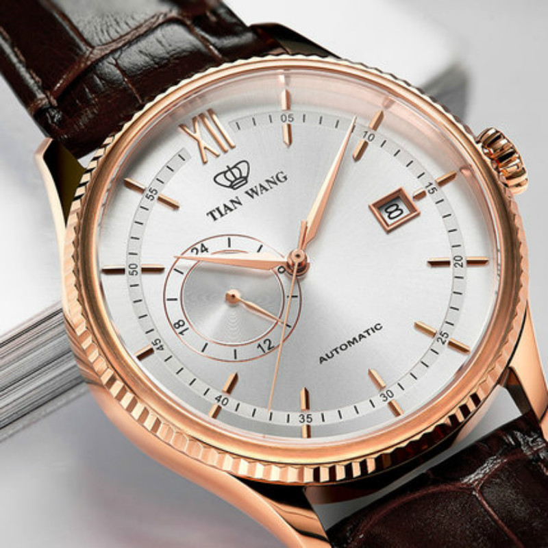 仲尼Johnny同款 天王表男表自动机械表皮带日历休闲腕表GS5956