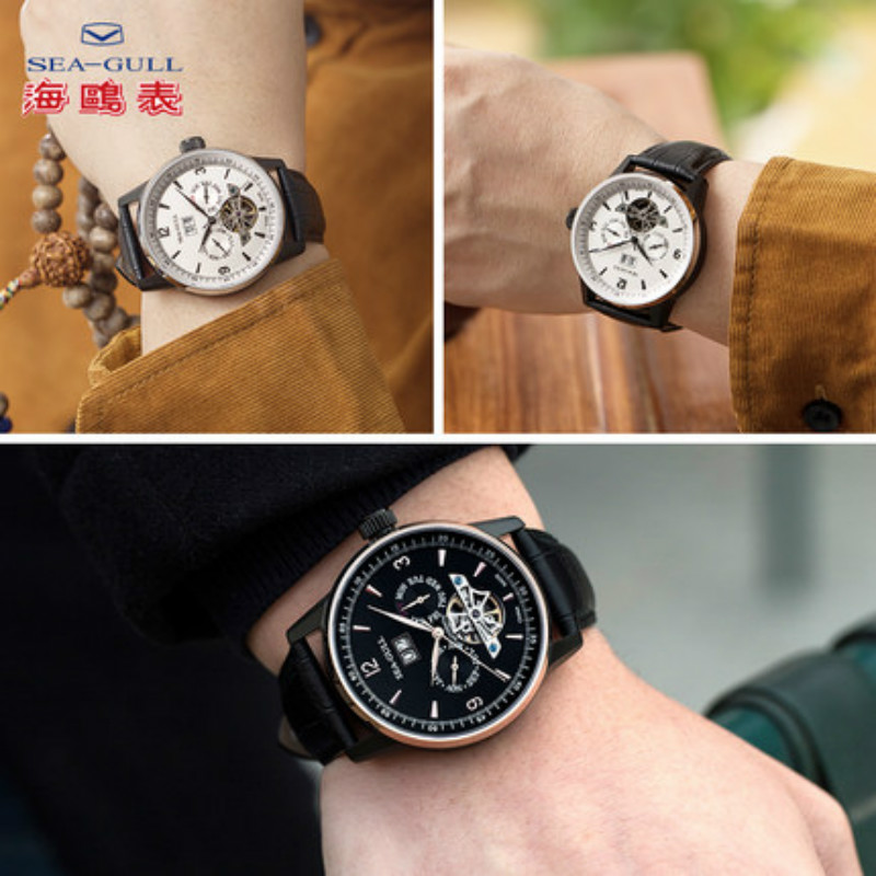 海鸥手表男士皮带腕表时尚多功能镂空防水男表自动机械表219.328