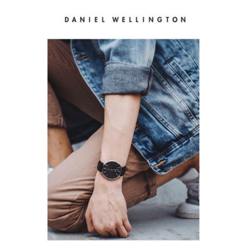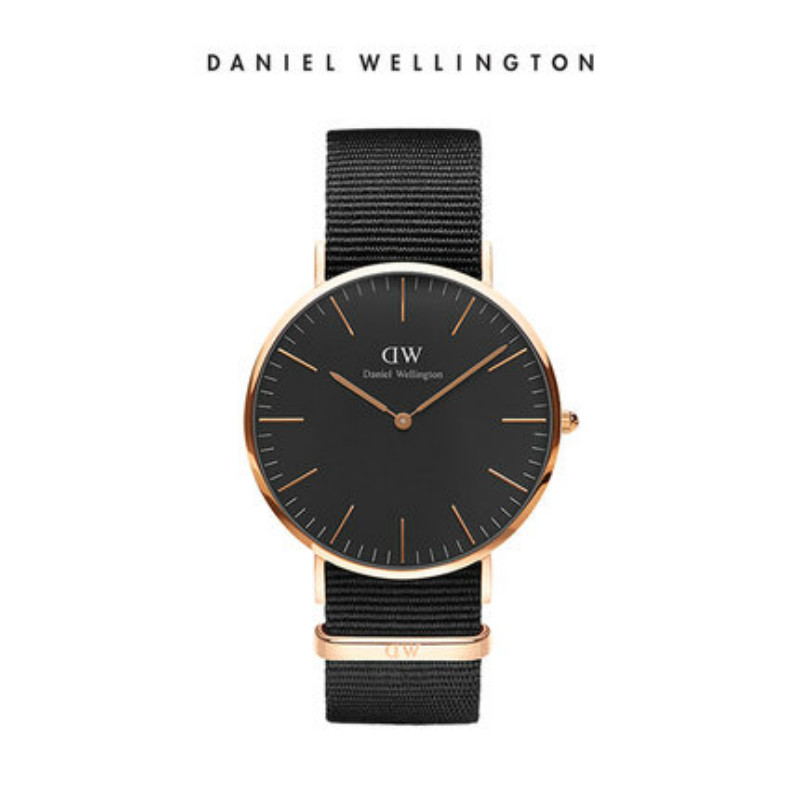 DanielWellington丹尼尔惠灵顿DW黑手表织纹带男表黑表盘
